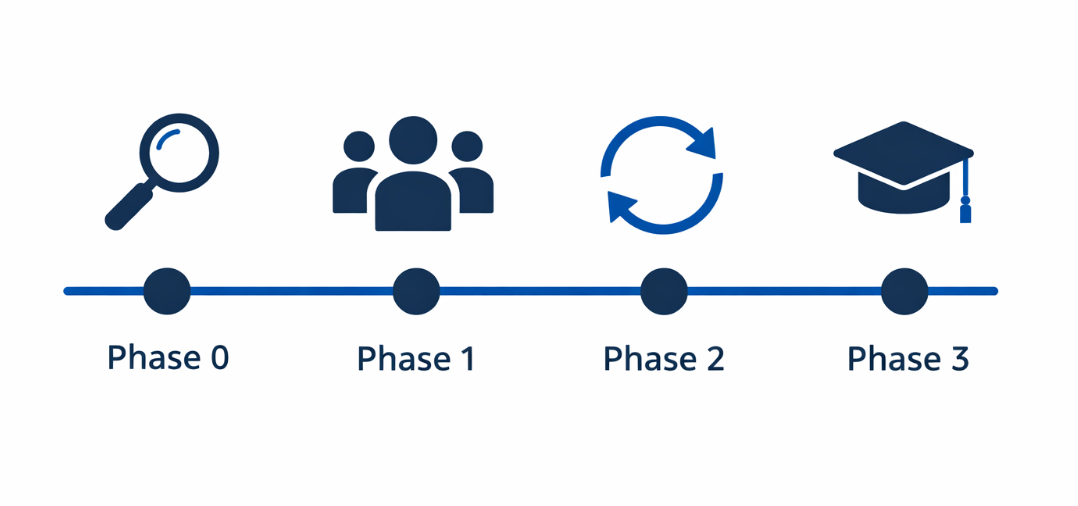 Phase 3 β Business-anchored upskilling (weeks 4 to 12)