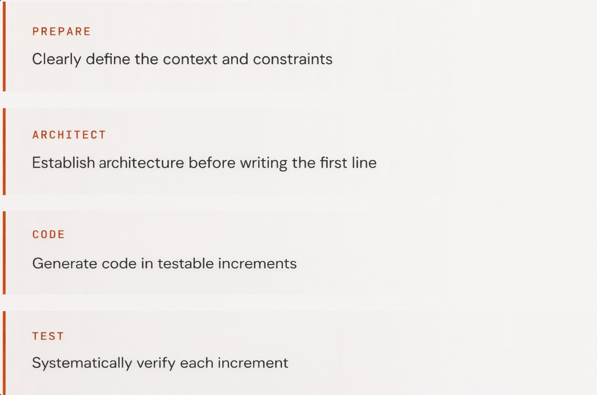 The common thread : explicitly separating specification phase from generation phase. The human developer invests more on upfront, requirements, architecture, security constraints, so that the AI produces compliant code downstream.